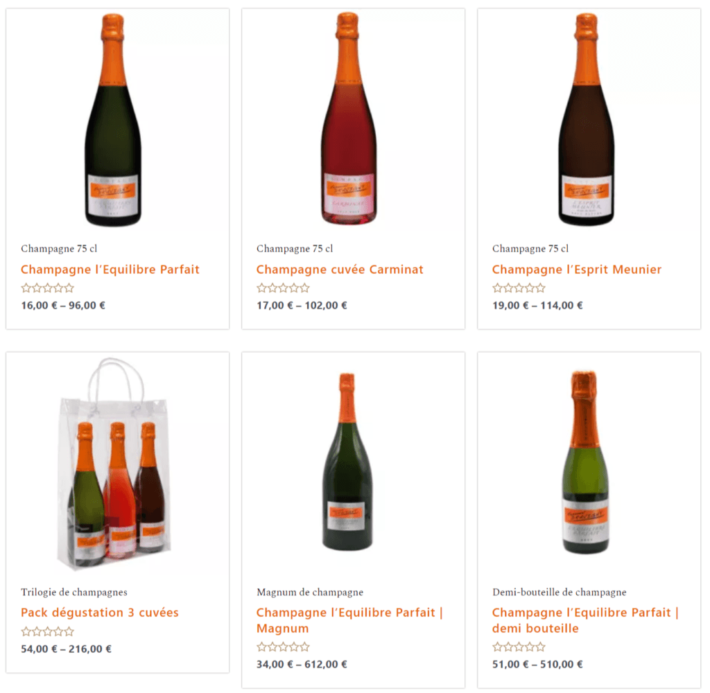 Création d’un site web e-commerce pour la vente de champagne. Viticulture durable et domaine viticole classé exploitation de haute valeur environnementale.